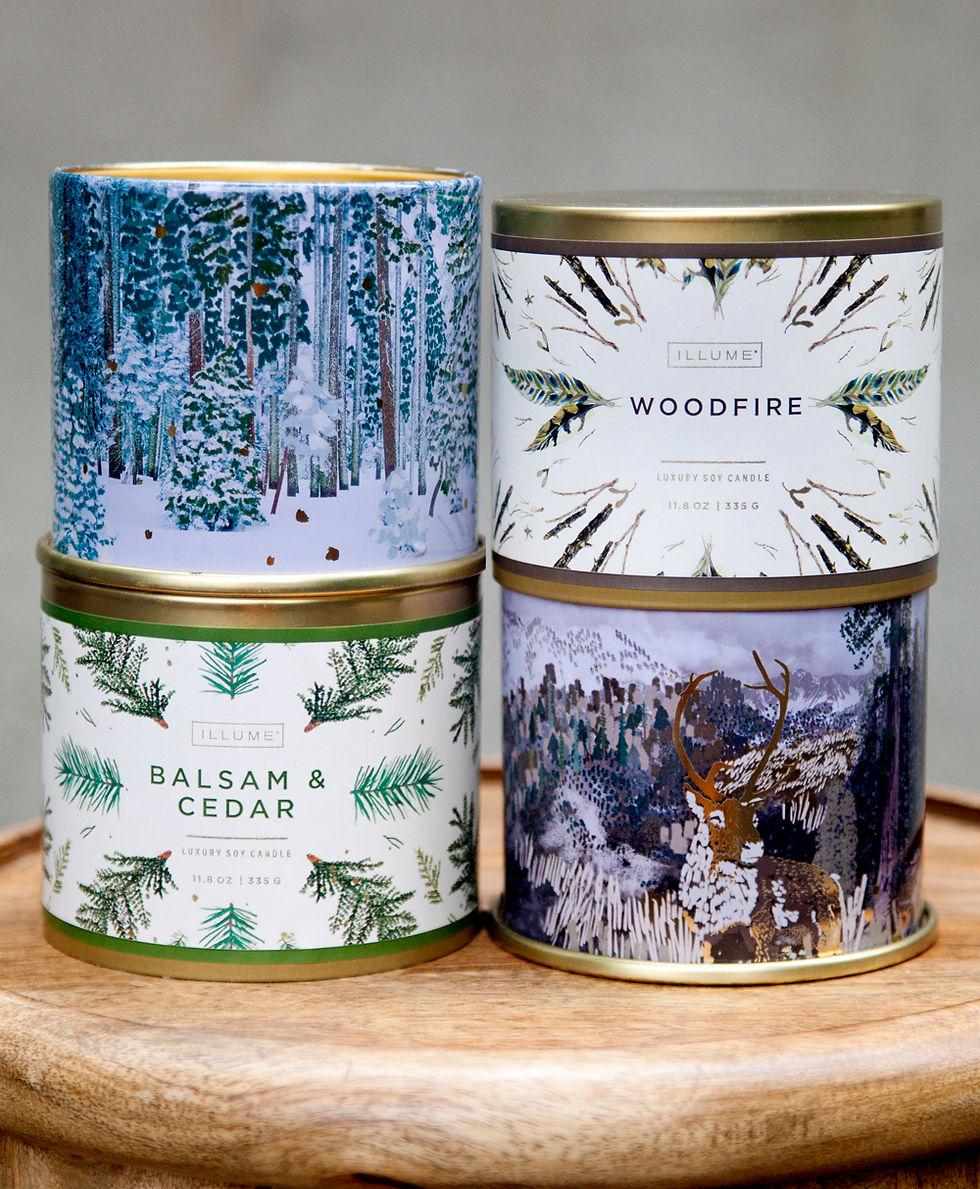 It's what everyone has been waiting for, those near perfect Winter scents. Glorious Balsam & Cedar and tantalizing Woodfire, in newly designed tins both large and small. The small tins burn for 20 hours, and the large ones for 50!
